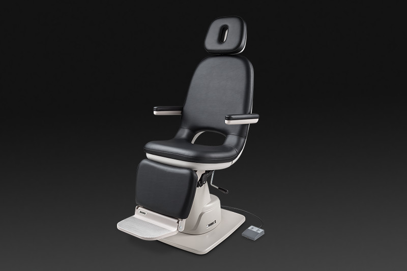 Esta es una silla de examinación manual, neumática asistida, inclinable, que ofrece un diseño contemporáneo y lujoso, un reposacabezas que mantiene a los pacientes confortables.