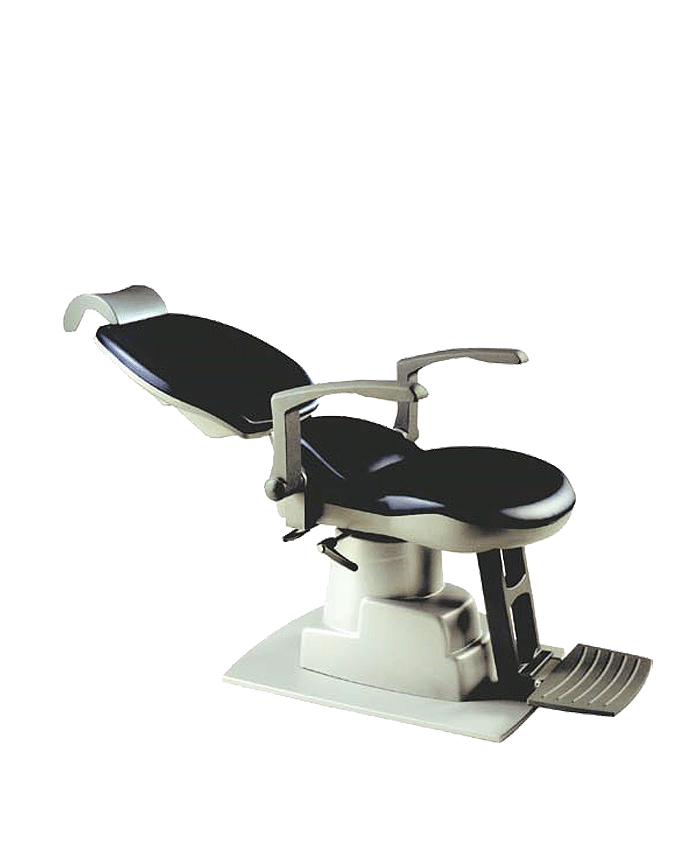 El respaldo de la silla oftalmológica de hospital tiene un sistema de elevación completo para un posicionamiento vertical suave del paciente.