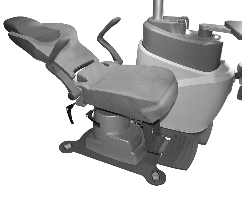 La silla puede rotar 180º, para que el profesional pueda rotar durante los procedimientos seleccionados mientras el paciente es reposicionado.
