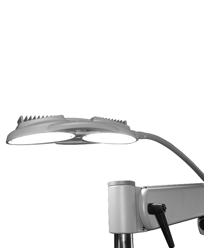 Brazo de Lámpara de Hendidura Contrabalanceado. Un mecanismo de sistema de bloqueo le permite ajustar la altura con una sola mano.